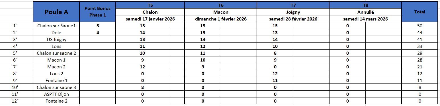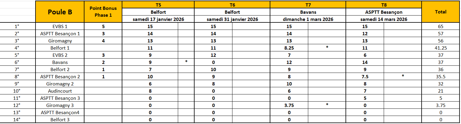 * equipe incomplète: 3/4 des points après vérification des licences