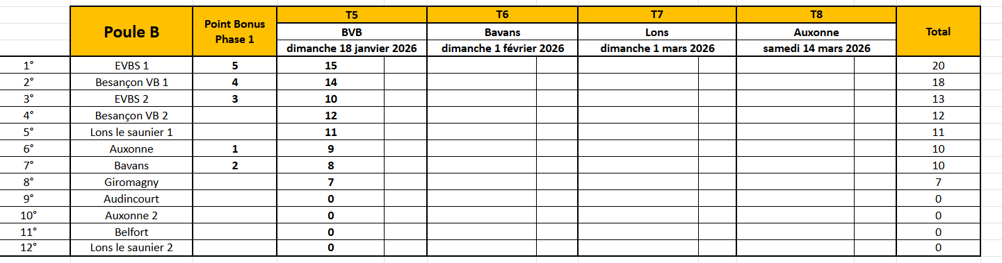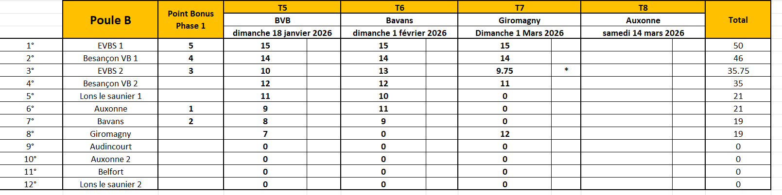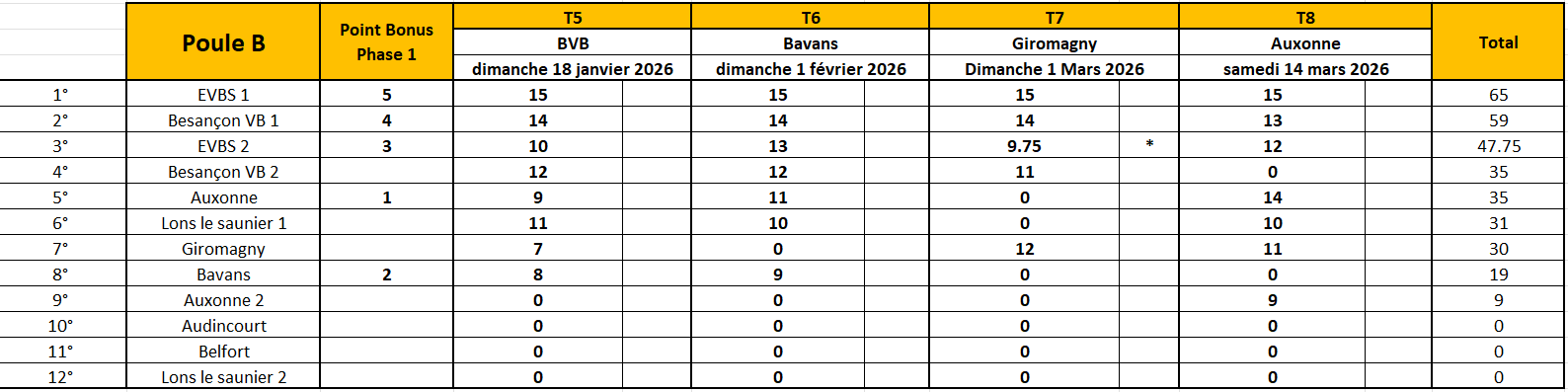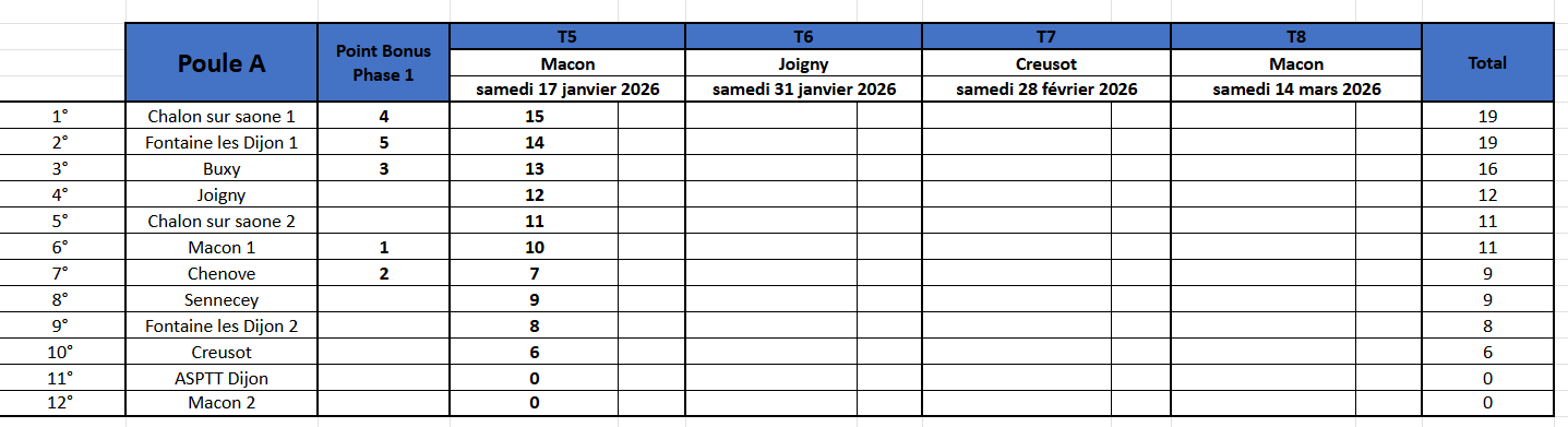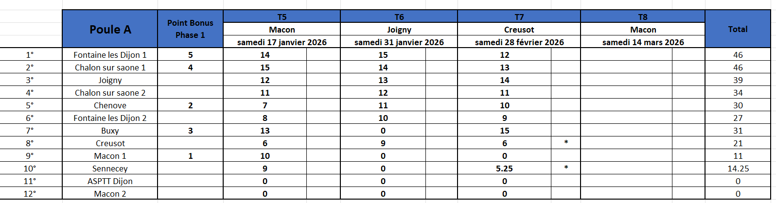 * equipe incomplète: 3/4 des points après vérification des licences