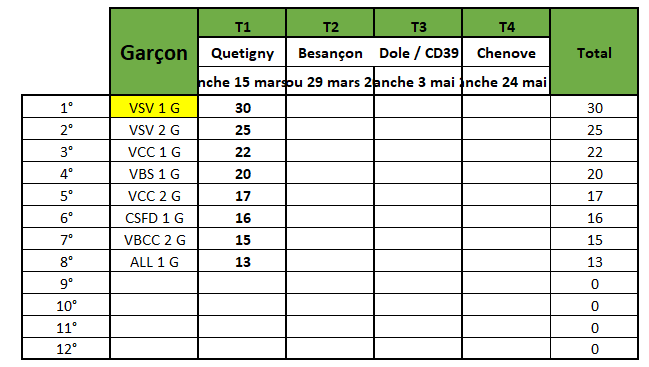 Classement Masculin