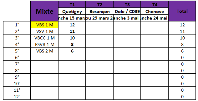 Classement Mixte