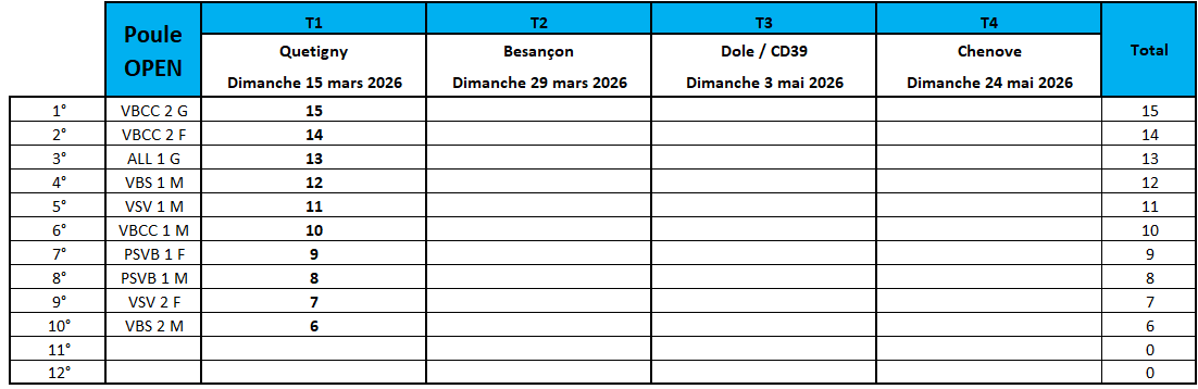 Resultat tournoi OPEN